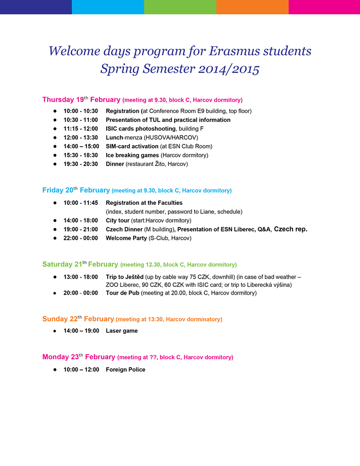 We are really glad that you choose Liberec as your second home for summer semester.